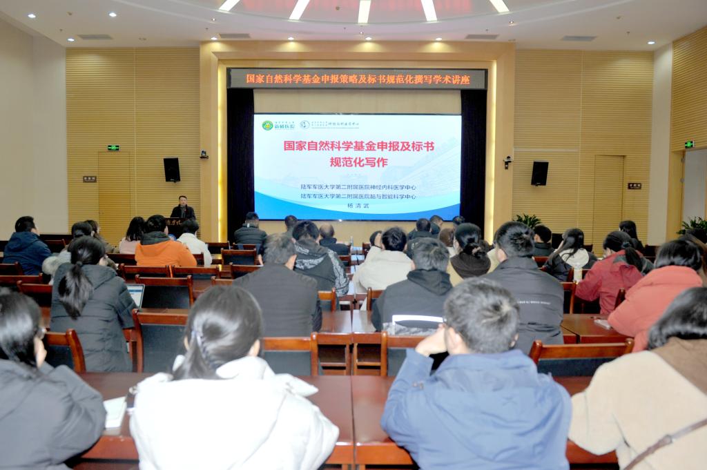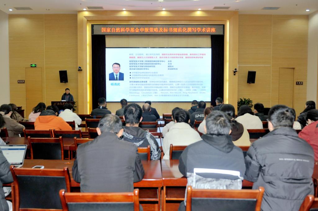 为提升我校国家自然科学基金申报质量,12月9日,学校特邀陆军军医大学第二附属医院杨清武教授来校,作“国家自然科学基金申报策略及标书规范化撰写”学术讲座。各学院、附属医院科研骨干及青年教师踊跃参加,学校党委常委、副校长张涛出席该讲座。